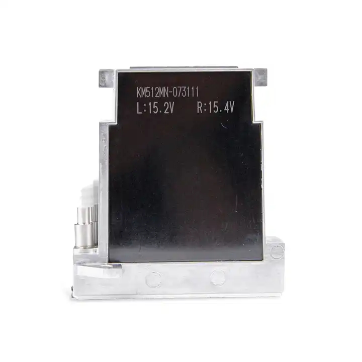 The KM512 series inkjet printhead uses piezoelectric on-demand inkjet, which uses the deformation of a small ink chamber made of piezoelectric materials to spray ink droplets.
